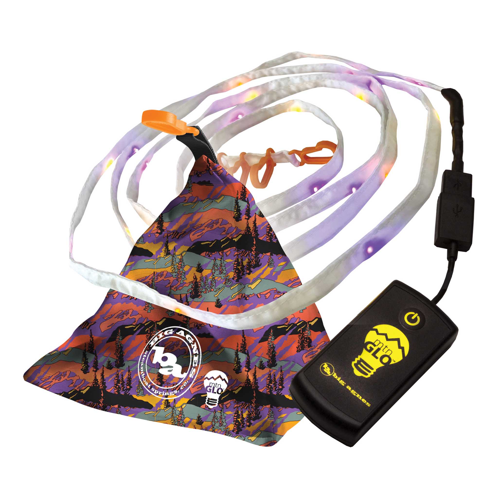 There's a world of difference between the harsh spotlight glare of a headtorch and soft ambient lighting that fills your tent with a comfortable glow. Big Agnes' mtnGLO Camp Lights have always been one of the smarter things you can add to your kit list – and for their 25th anniversary, the Steamboat Springs crew have wrapped them in the Alpenglow print: that distinctive Colorado mountain landscape in purples, oranges and deep greens, rendered in a graphic style that looks as good strung up at camp as it does on the shelf. String them around your tent or across your campsite for diffuse illumination, or pack them into the included pyramid carry case to hang as a lantern. Weighing just 56g, there's really no excuse not to bring them.
