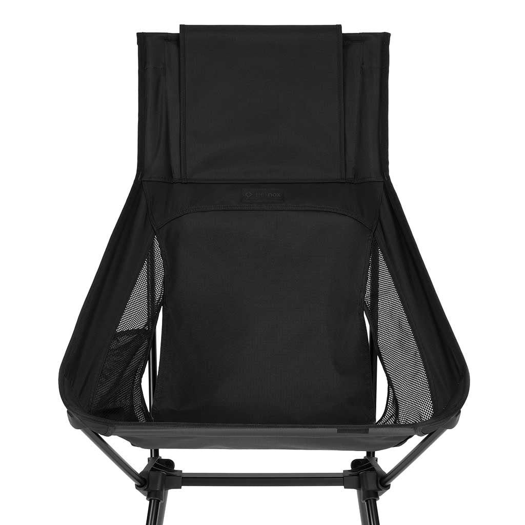 Camp like you mean it. The Sunset Chair (re) evolves a Helinox classic with (re)Tension Design — an extra tension line that redistributes load for a deeper, more supportive sit. Longer legs make getting in and out effortless, while the tall back cradles shoulders and neck when you’re lingering by the fire. Assembly is a breeze thanks to molded corner pockets and shock-corded poles, and the redesigned hubs pair with DAC alloy for trusted stability. Thoughtful touches seal the deal: an integrated side pocket for bits and bobs, a headrest flap that holds a puffy or the case for cushy support, and hard-wearing, bluesign®-approved recycled fabrics with breathable mesh. All while packing down neatly for weekends away, festival fields or glamping hideaways.