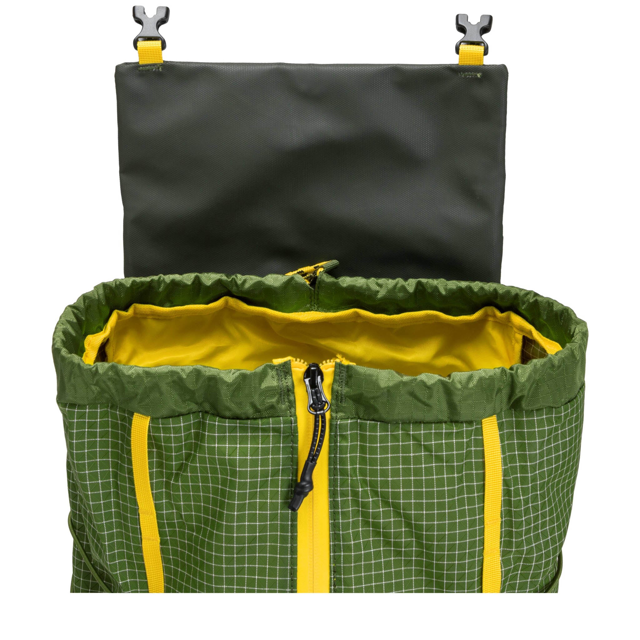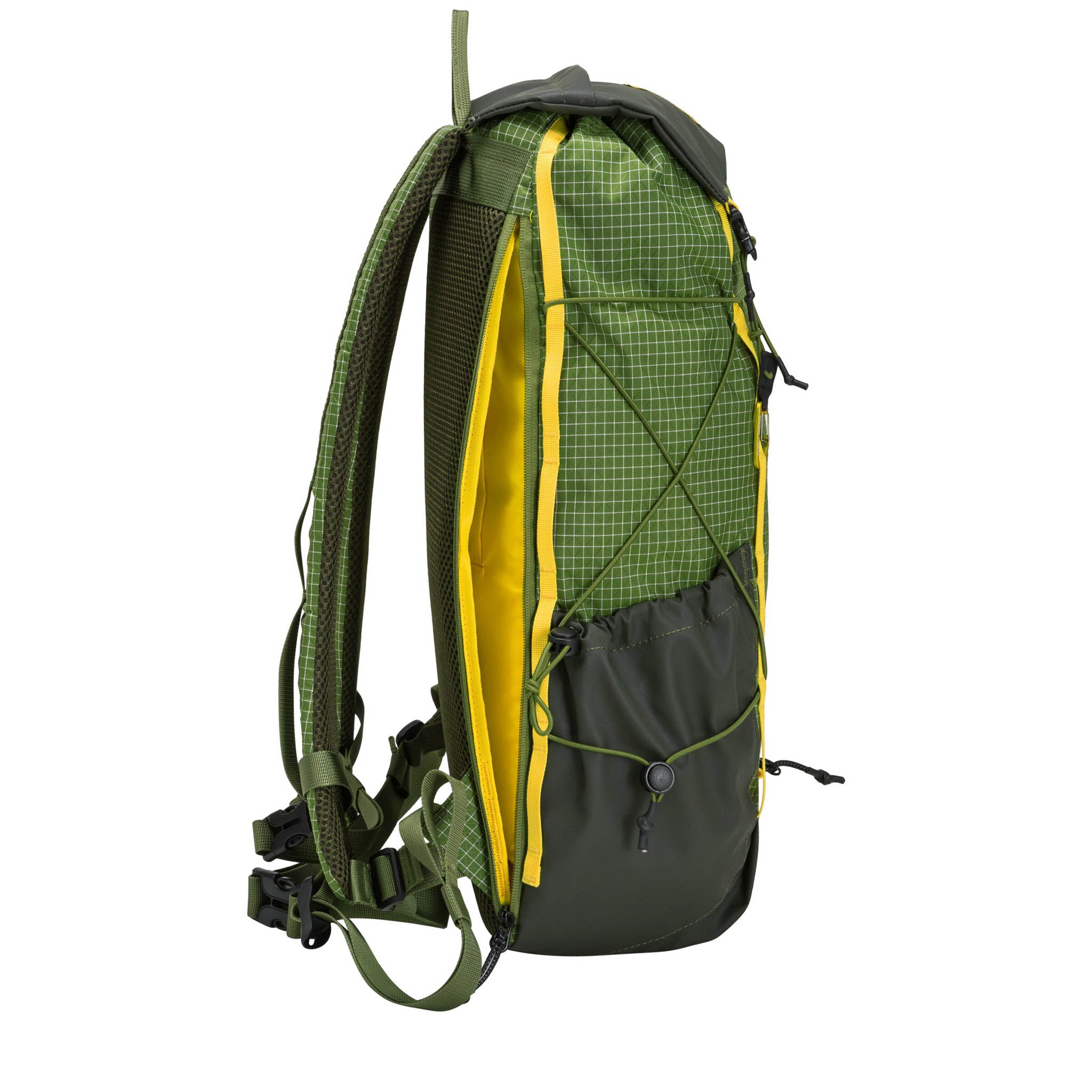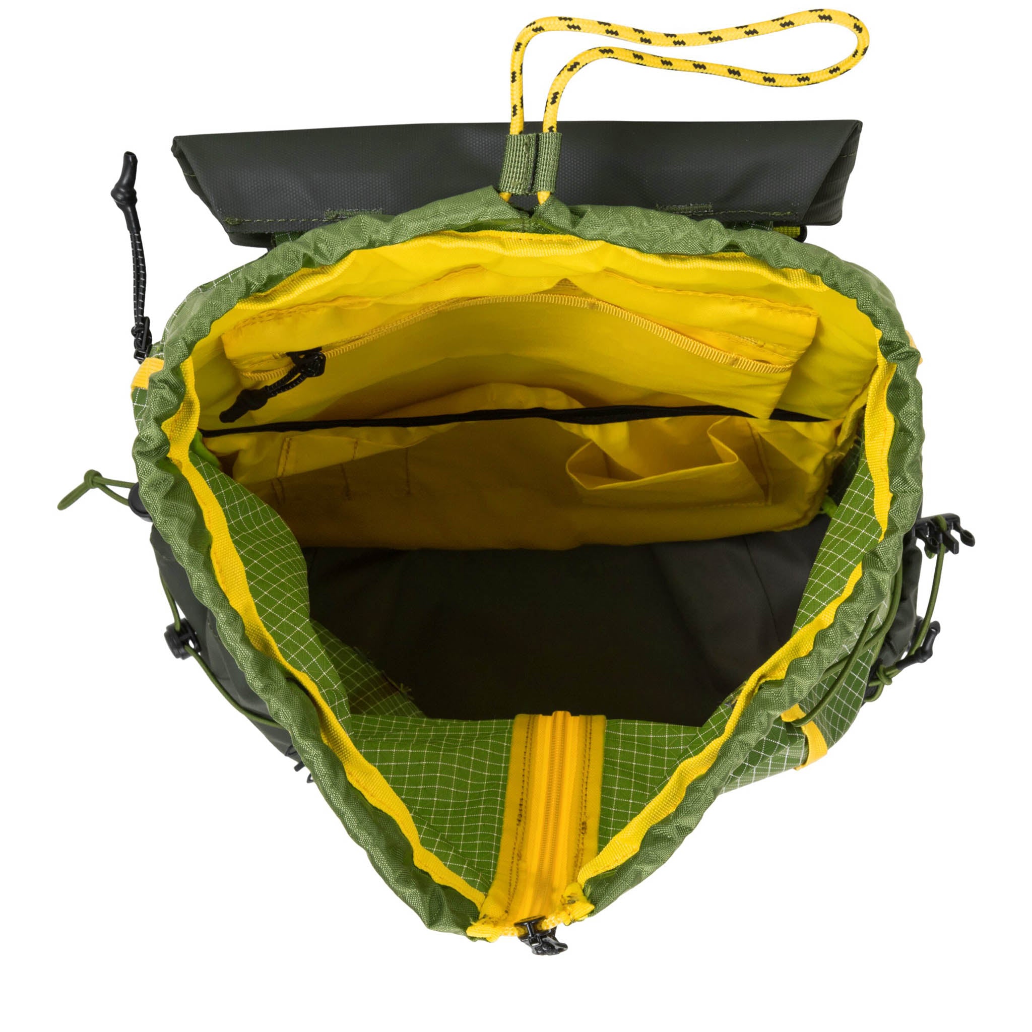 • Flap-over opening with vertical waterproof YKK zip pocket and adjustable drawstring