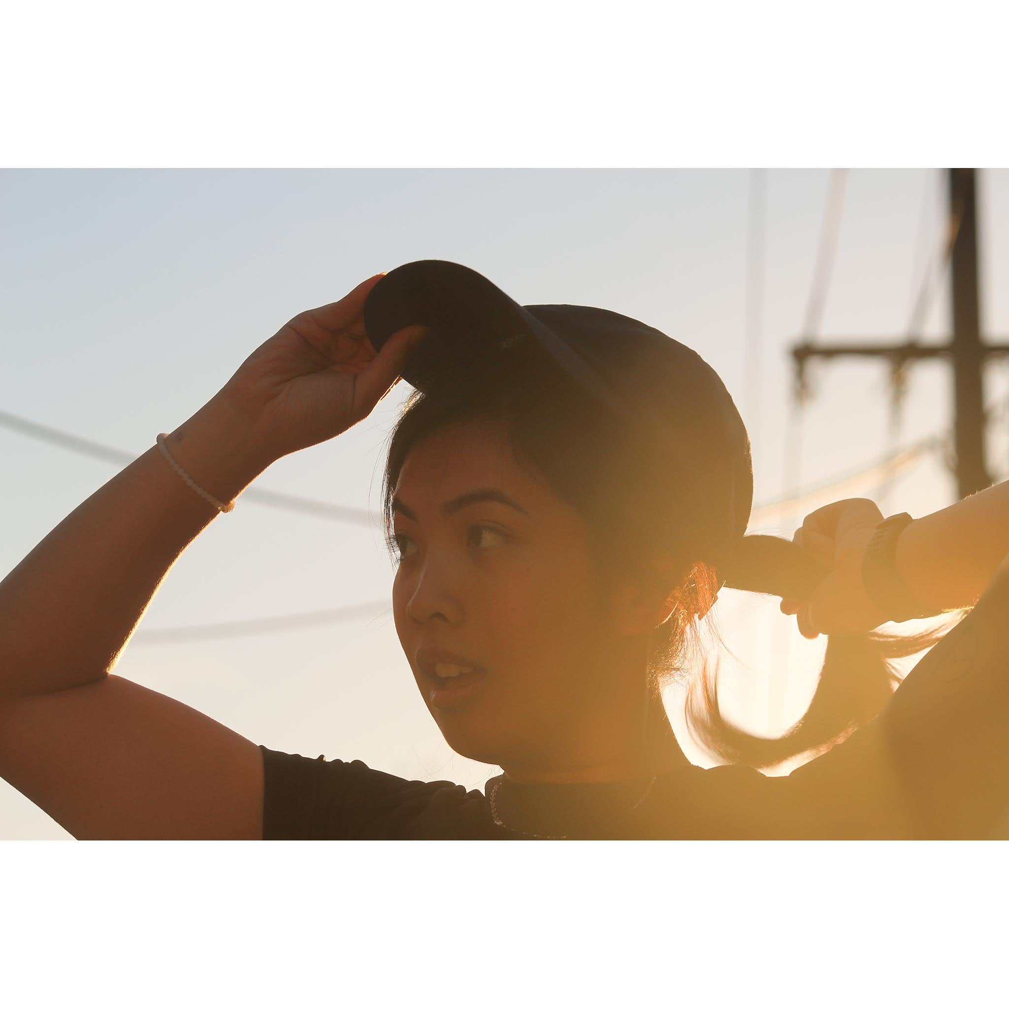 • Wide back opening fits high or low ponytails