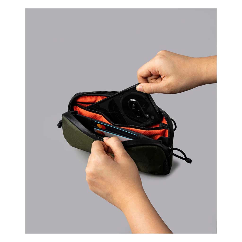 The gap between boarding call and gate closing is not the time to be searching for your passport. The Flight Pouch Pro keeps every travel essential -- passport, boarding passes, cards, pen -- in one organised, grab-and-go package. Multiple quick-access pockets let you pull documents without unpacking the entire thing, whilst a secure zippered compartment protects the items you can't afford to lose. RFID-blocking fabric keeps your cards safe from digital thieves working busy terminals, and the weather-resistant construction means coffee spills and sudden downpours won't ruin your day. Clip it inside your pack for organised travel or wear it cross-body when you need hands-free access through security. Whether you're sprinting for a connection in Amsterdam or methodically working through airport security at Heathrow, this pouch transforms travel chaos into calm, organised movement.