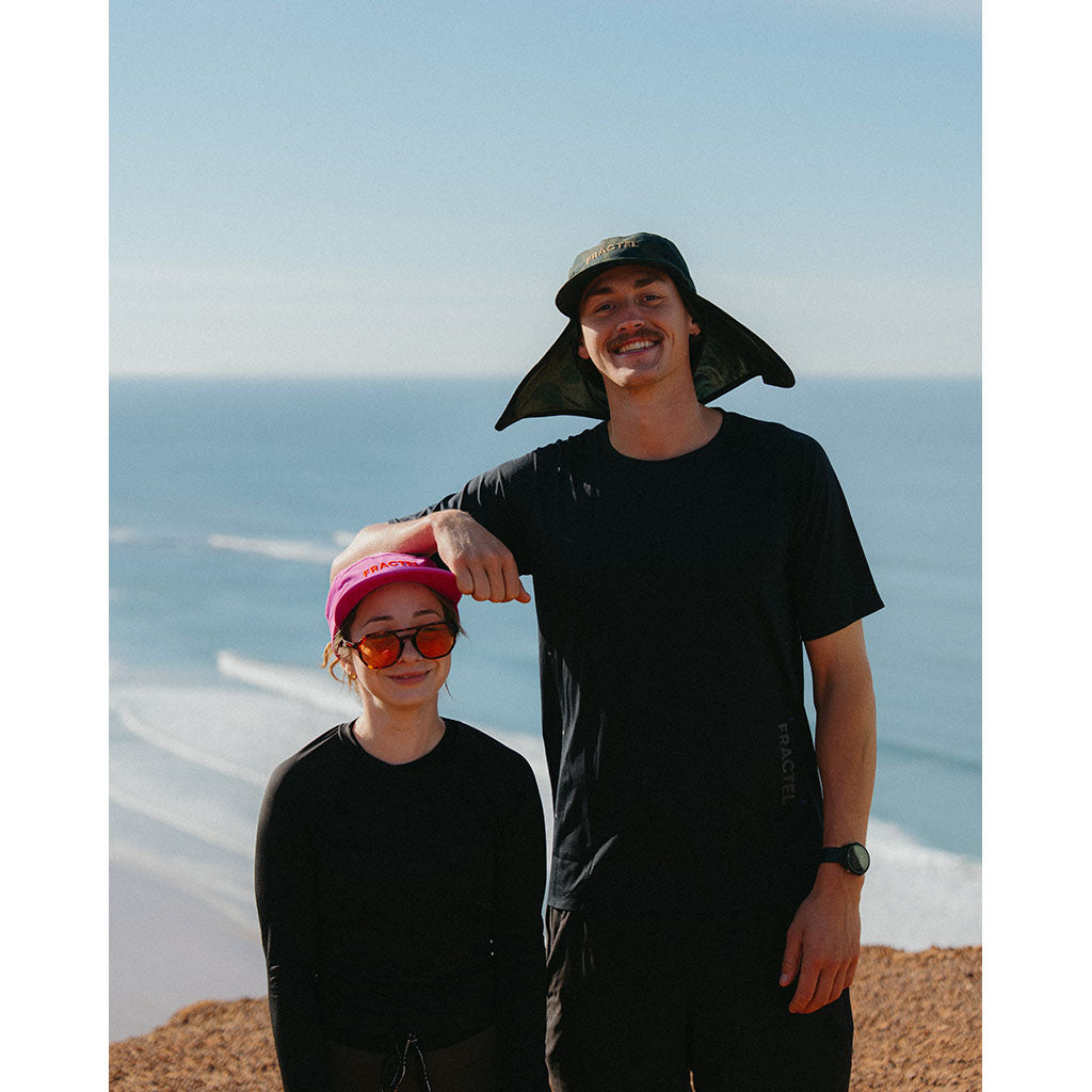 When the sun’s unrelenting, the FRACTEL L-Series Premium Cap is your best defence. Built for the most extreme environments on Earth, it delivers full 360° coverage with an extended neck flap to keep you protected in harsh conditions. Crafted from recycled fabrics, it’s lightweight, breathable, quick-drying and finished with UPF 30+ protection for serious performance under the sun. With a soft internal sweatband, this cap stays comfortable on long adventures, while its machine-washable design keeps it ready for more. Whether you’re out on desert trails, alpine crossings or blazing through summer runs, the L-Series Premium keeps you cool, covered and confident.